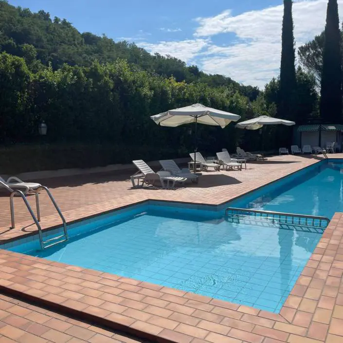 Piscina all’aperto, campo da tennis, garage custodito per biciclette e moto.